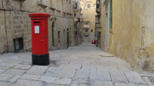 Detail in Grand Harbour quite, cool and narrow Gasse Letterbox precinct at night church Publicviewing during the EM 2012 close to Talisker destillery graffiti even here walkable cell phone narrow street in Mdina